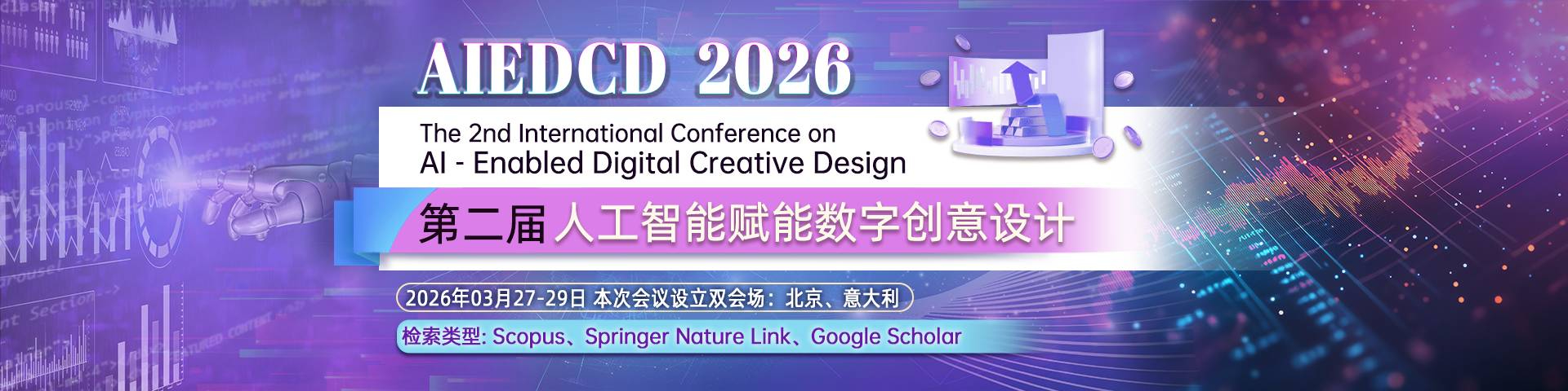 会议简介 第二届人工智能赋能数字创意设计国际学术会议 (AIEDCD 2026) 将于2026年3月27-29日在中国北京&意大利召开。会议主要围绕人工智能与数字创意设计等研究领域展开讨论。会议旨在为从事相关研究领域的专家学者、工程技术人员、技术研发人员提供一个共享科研成果和前沿技术,了解学术发展趋势,拓宽研究思路,加强学术研究和探讨,促进学术成果产业化合作的平台。大会诚邀国内外高校、科研机构专家、学者,企业界人士及其他相关人员参会交流。