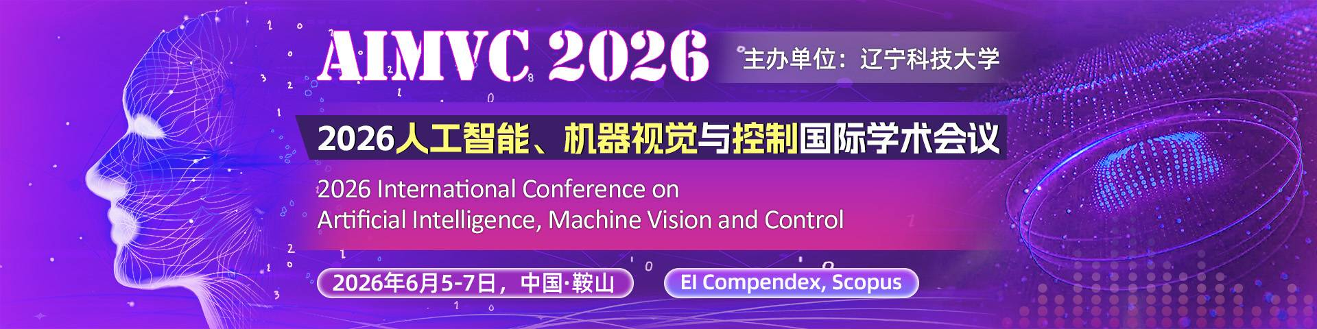 在全球人工智能浪潮的推动下,人工智能、机器视觉与控制领域正以前所未有的速度融合创新。2026人工智能、机器视觉与控制国际学术会议(AIMVC 2026)将于2026年6月5-7日在中国·鞍山举行。会议旨在汇聚全球学术界与产业界的专家学者,围绕智能理论、视觉感知、控制决策等前沿议题展开深入交流,构建高水平的国际学术平台。我们诚邀各国学者、工程师与产业代表踊跃参会,分享洞见,共同推动领域发展与产业升级。