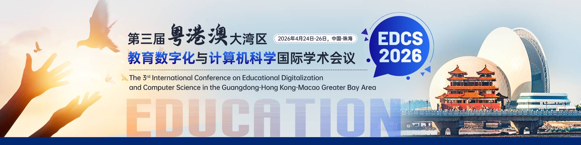 会议简介第三届粤港澳大湾区教育数字化与计算机科学国际学术会议(EDCS 2026)将于2026年4月24日至26日在中国珠海隆重召开。本次会议将继续聚焦教育数字化与计算机科学领域的前沿研究与实践,围绕数字技术革新与教育模式转型,探讨如何进一步推动教育系统的智能化、个性化和全球化发展。