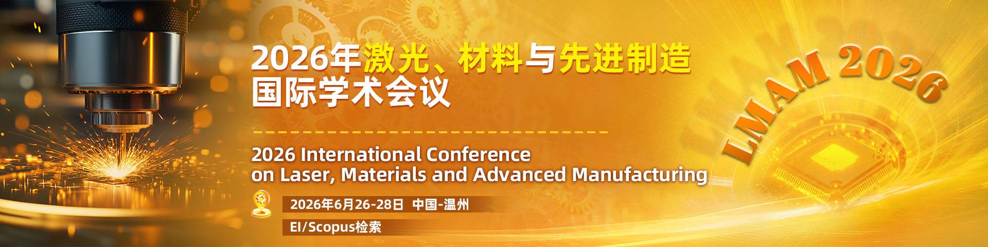 为促进我国光电科学与材料、制造领域绿色、规范、持续、健康发展,提升科技创新能力,推进学科交叉融合和产学研相结合,了解相关重大关键性理论和技术难题,2026年激光、材料与先进制造国际学术会议(LMAM 2026)将于2026年6月26-28日在中国温州举行。会议主要围绕激光、材料与先进制造领域的最新研究成果展开,为来自国内外高等院校、科学研究所、企事业单位的专家、教授、学者、工程师等提供一个分享专业经验,扩大专业网络,面对面交流新思想以及展示研究成果的国际平台,探讨本领域发展所面临的关键性挑战问题和研究方向,以期推动该领域理论、技术在高校和企业的发展和应用,也为参会者建立业务或研究上的联系以及寻找未来事业上的全球合作伙伴。