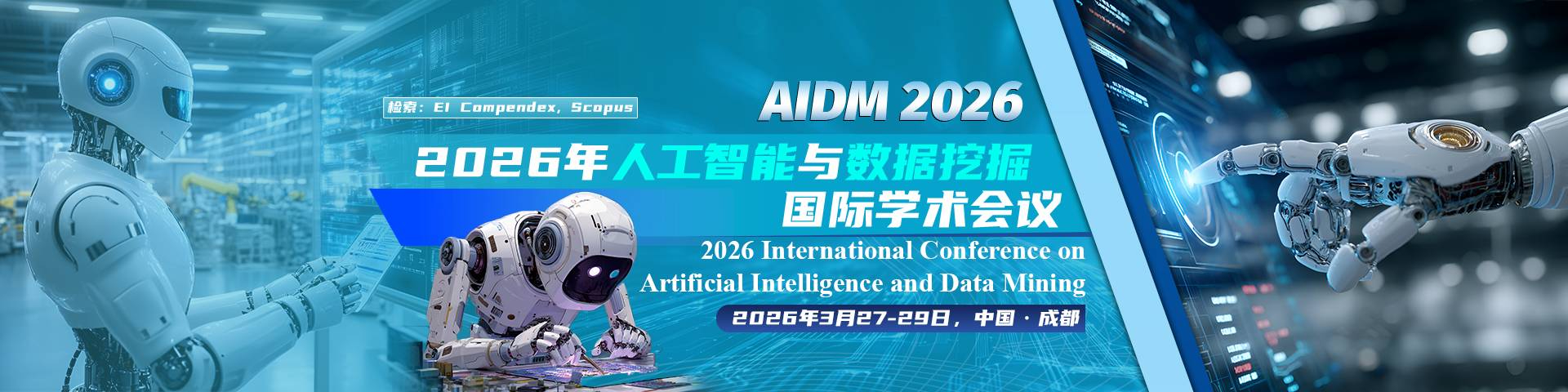 会议简介2026年人工智能与数据挖掘国际学术会议(AIDM 2026)将于2026年3月27-29日在中国成都举行。大会主要围绕“人工智能与数据挖掘”的最新研究展开,旨在荟聚世界各地该领域的专家、学者、研究人员及相关从业人员,分享研究成果,探索热点问题,交流新的经验和技术。