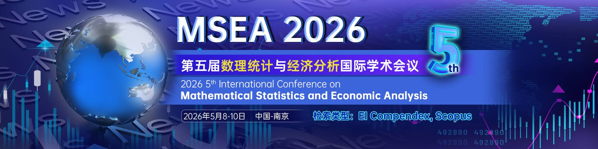 第五届数理统计与经济分析国际学术会议 (MSEA 2026)将于2026年5月8-10日在中国南京召开。