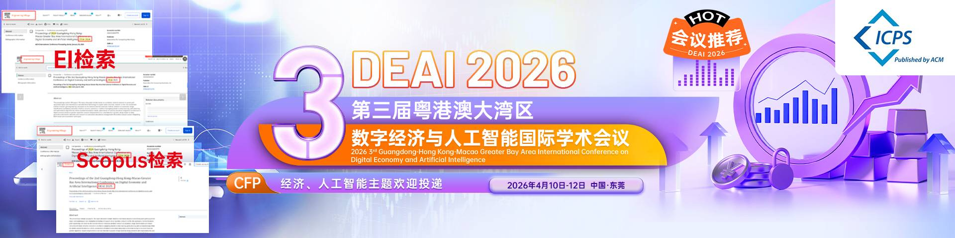会议简介第三届粤港澳大湾区数字经济与人工智能国际学术会议(DEAI 2026)将于2026年4月10日至12日在广东省东莞市隆重召开。本次大会诚邀来自全球高等院校、科研机构、企事业单位的专家学者、工程技术人员和研发人员共聚一堂,围绕“人工智能”和“数字经济”等前沿主题,分享最新科研成果与实践经验,深入探讨行业关键挑战与发展方向。